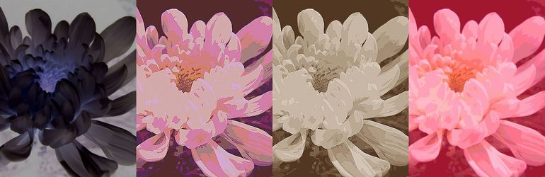 このアヤシゲな菊の加工は、先日表のブログでご紹介した素材もどきです。画像加工の効果をお見せするのが楽しくて、たくさん作ったモノたちを、このままにしておくのがもったいなくて(笑)。それで、こんなふうに再利用?してみました。